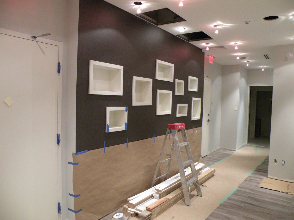 12The interest wall in this podiatrist's office featured custom-built inset boxes for display purposes