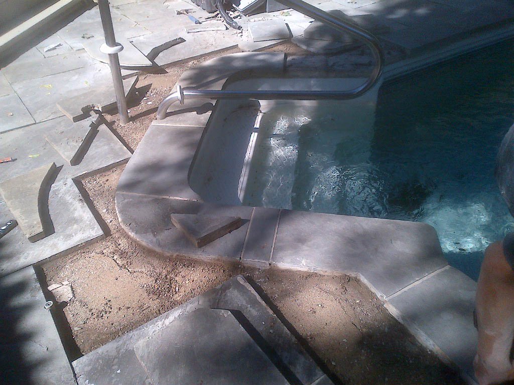 37We're sometimes asked to do more than just wooden millwork! This progress shot shows our repair to the heaving slate slabs that surrounded this exterior swimming pool